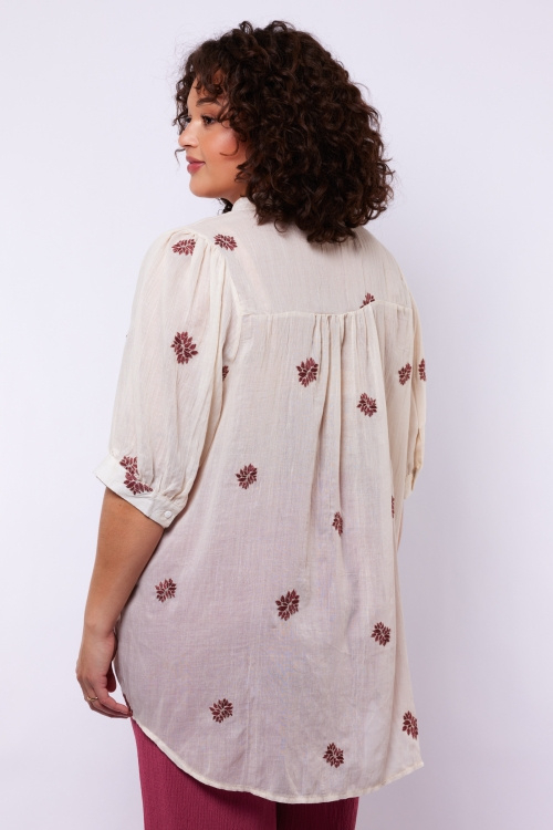 Exxellent '' Khloe'' blouse Creme met roze bloemen print