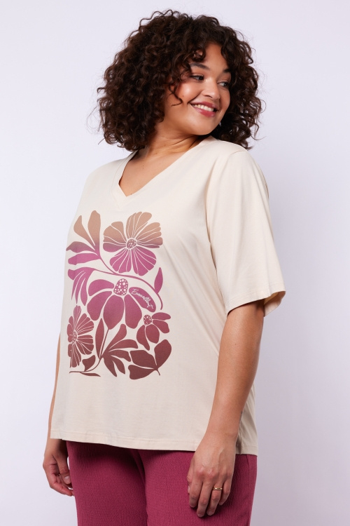 Exxellent T-shirt Lumi zand met roze print